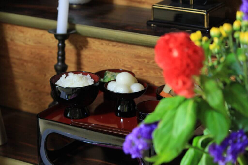 このお供え物は、ご先祖様の食べ物ではなく、日頃の感謝を伝えるためのものです。