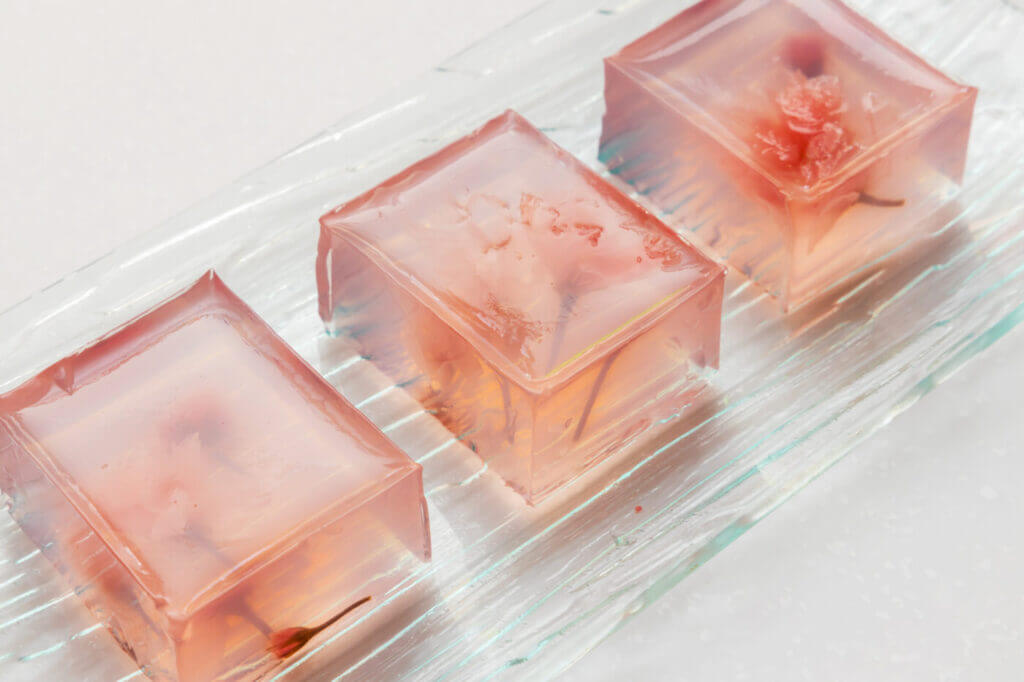 果物や豆類を寒天などで寄せ固めたものを言います。