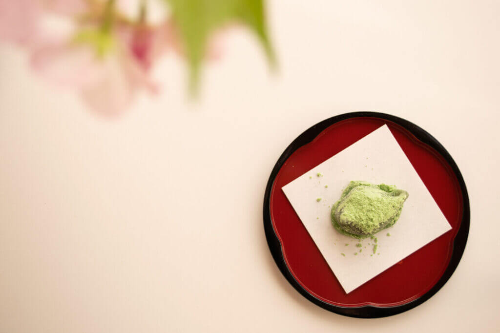 春を告げる和菓子の一つ鶯餅は、粒餡を餅で包み、青きな粉をまぶした和菓子です。