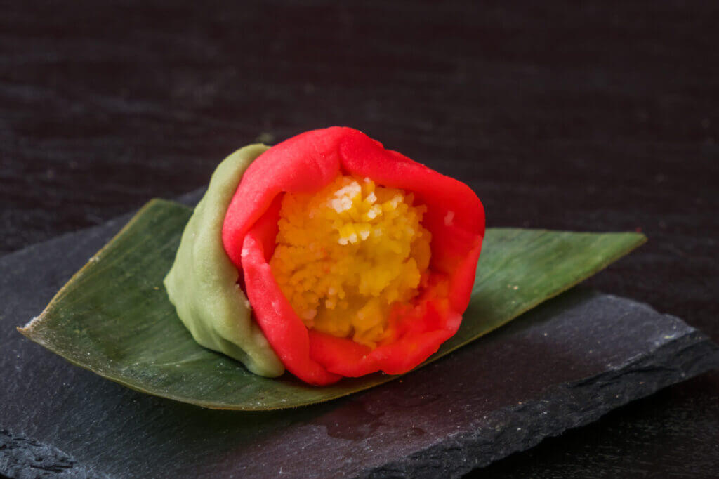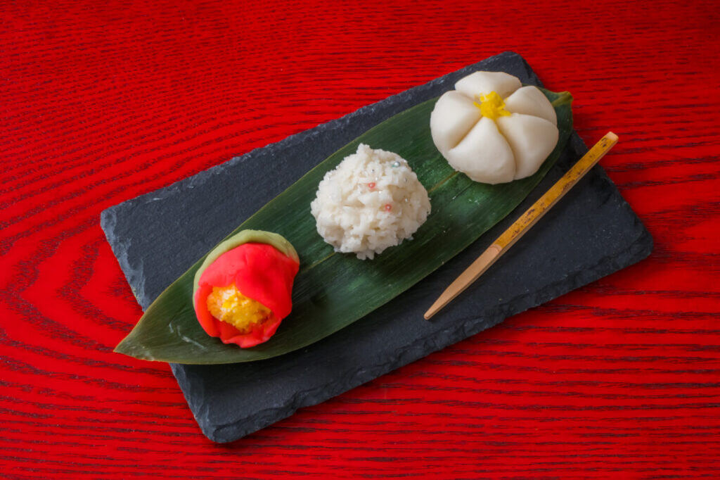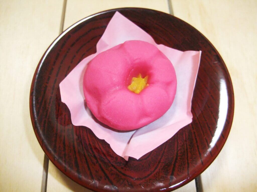 このように、抽象的に表現した和菓子に対して、椿の花そのものを模したものもあります。