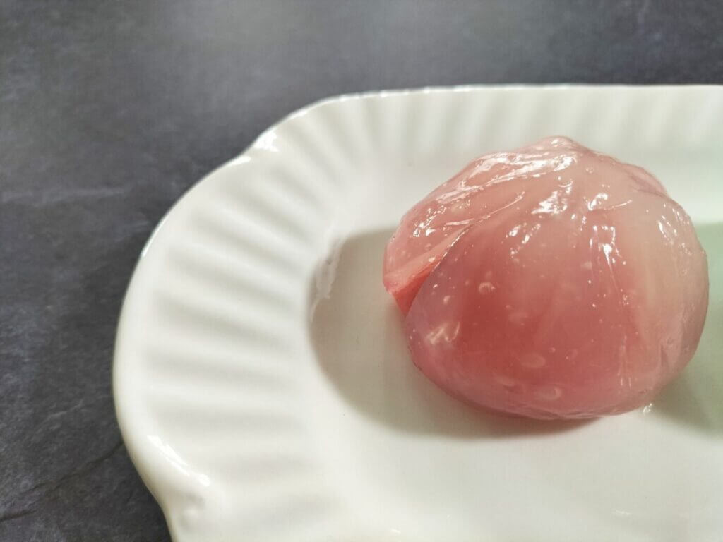 ぷっくりとした丸い形を求肥や外郎で作り、梅らしい筋やくぼみを表現します。