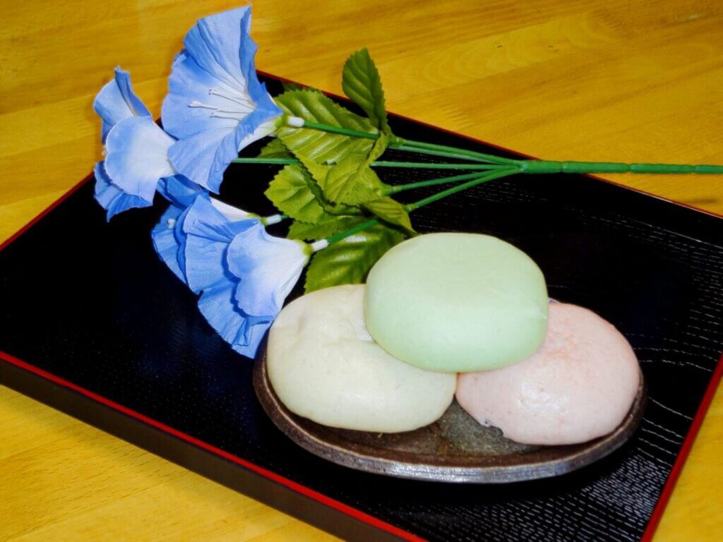 今、これらは氷室饅頭と呼ばれ、清浄の白・厄除けの赤・健康の緑の3色が用意されます。