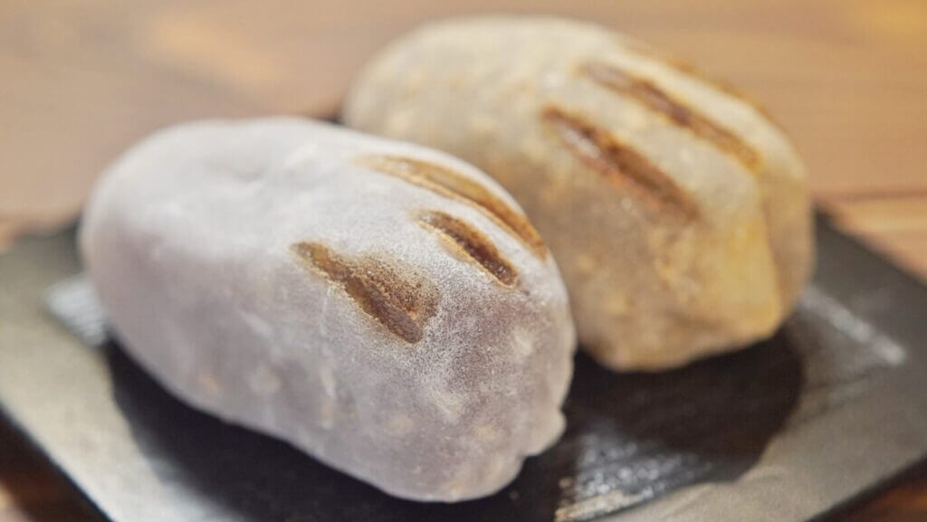 白い生地に、井桁や梅の紋様を施した『織部饅頭』が、亥の子餅と並び有名です。