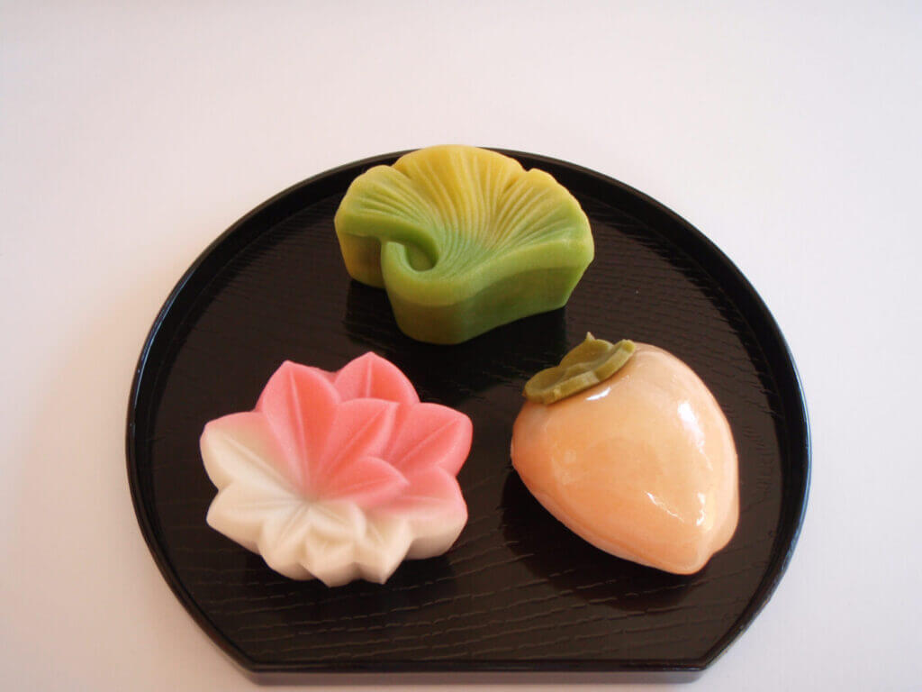 練切や干菓子で、葉そのものの形を表したものや、そぼろなどを用いて、美しい紅葉の雰囲気を出したものなどがあります。