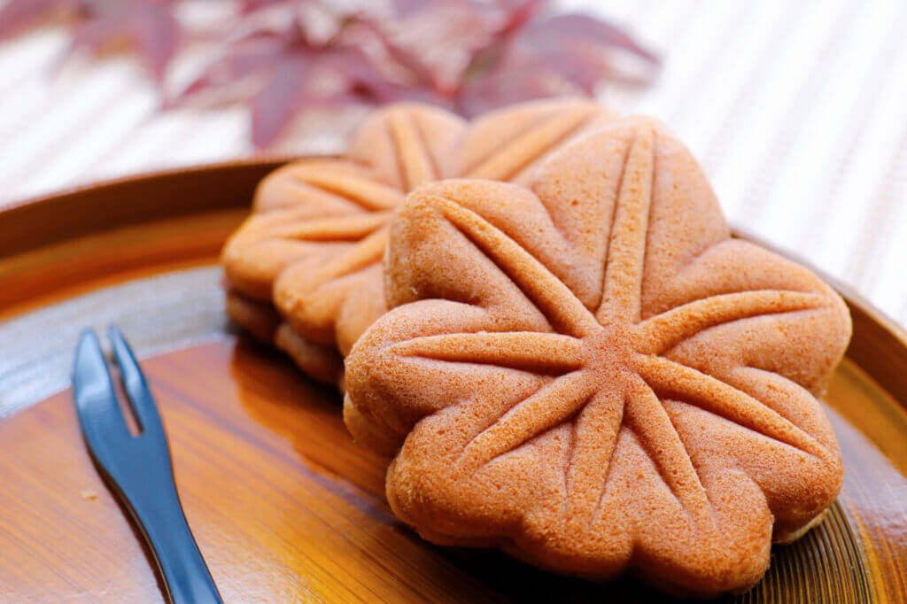 県の木にも制定されているモミジの葉の形をした型で焼いた『紅葉饅頭』は、